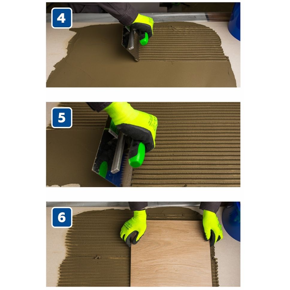 На поверхности стен и полов из бетона, железобетона, ячеистого бетона, кирпича, гипсокартона, цементных, известково-цементных и гипсовых штукатурок. Клей с повышенными прочностными характеристиками. Рекомендован в том числе для широкоформатного керамогранита 600х600,1200х200, 1200х600 мм на стены, напольного керамогранита без ограничения размеров. Применяется для облицовки полов с подогревом и крытых бассейнов. Обладает широкой сферой применения, высокой технологичностью, водо- и морозостойкостью, удобен в использовании, легко перемешивается с водой, обладает повышенной пластичностью, в процессе производства работ плитка не сползает с вертикальных оснований за счет высокой фиксирующей способности, что позволяет производить облицовку в любом направлении, в том числе "сверху вниз".