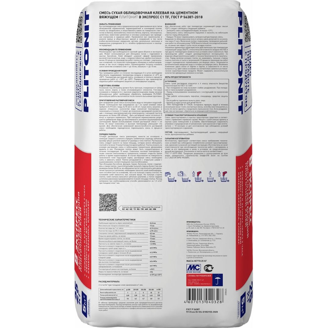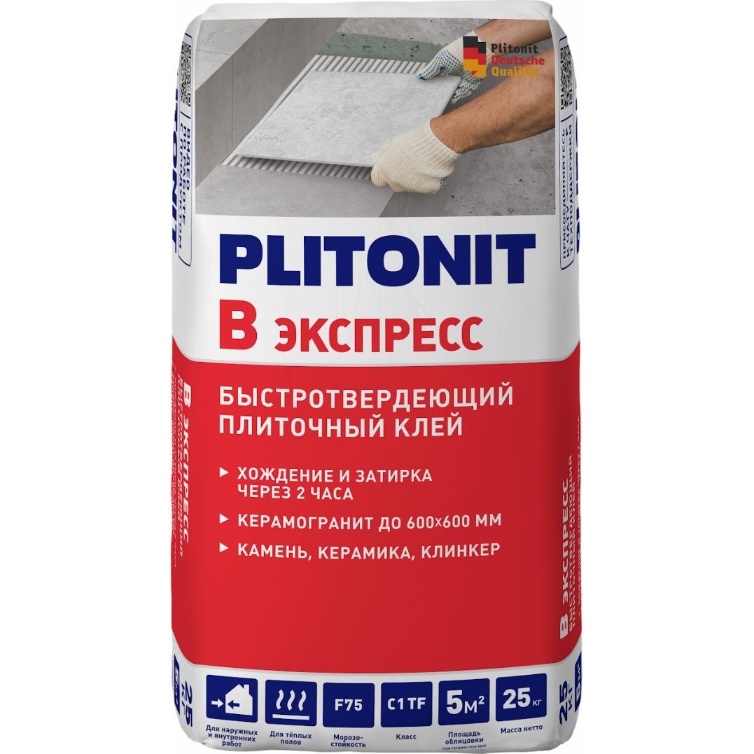 Клей для плитки, керамогранита, камня Plitonit (Плитонит) В экспресс Вб быстротвердеющий серый класс С1ТF 25 кг