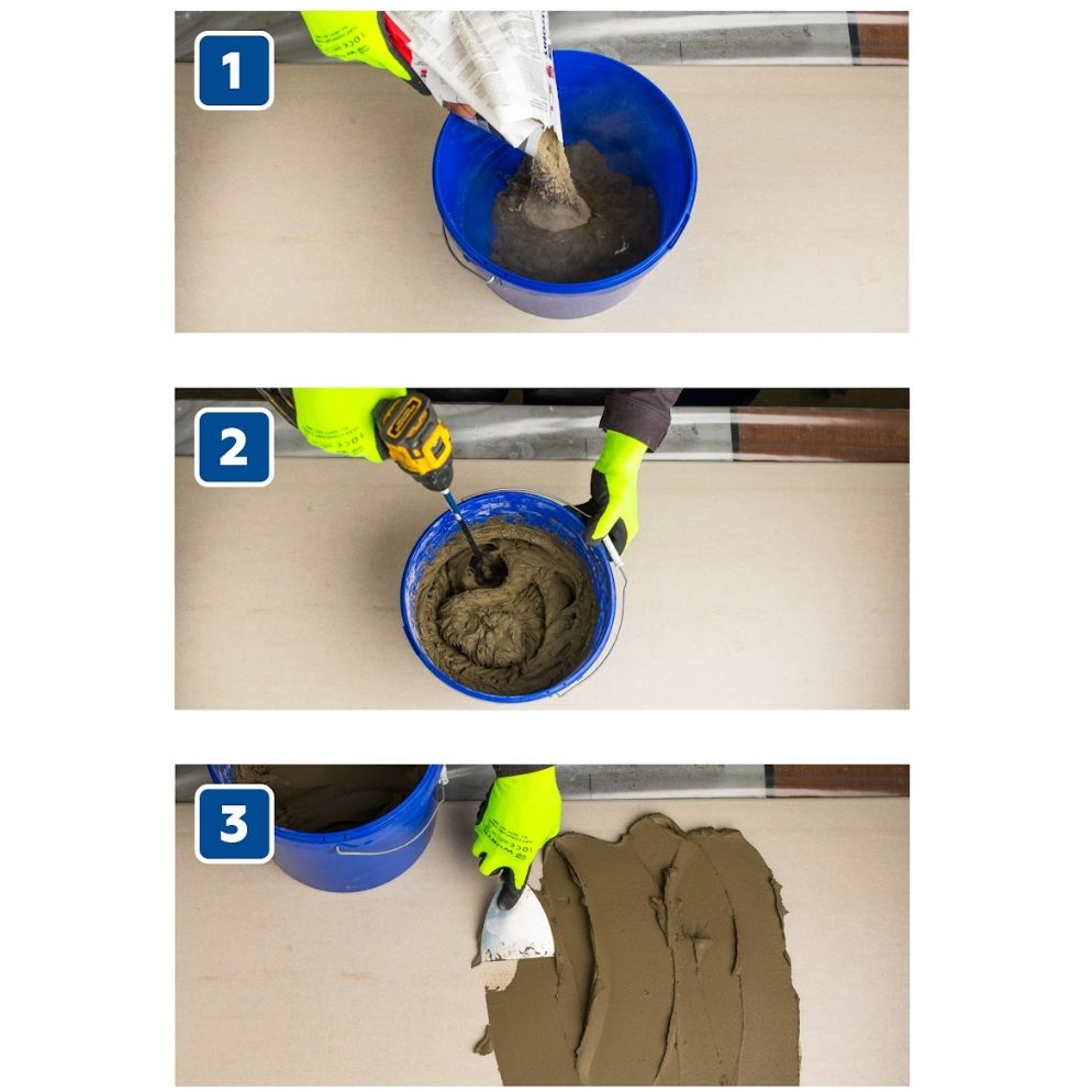 Быстротвердеющий клей для плитки из керамогранита, натурального и искусственного камня, клинкера, керамики. Класс С1TF. Подходит для облицовки внутри и снаружи помещения.